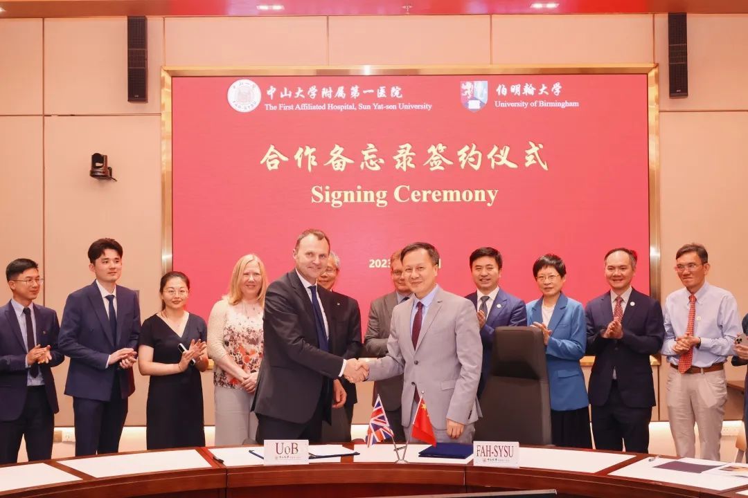 A delegation from the University of Birmingham (UoB) visited the First Affiliated Hospital of Sun Yat-sen University (FAH-SYSU) in Guangzhou's Nansha on June 20. A memorandum of understanding (MOU) was signed to further cooperation on healthy aging research.