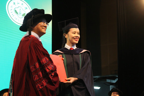 SYSU Vice President Xiao Haipeng conferring the degree to the graduate