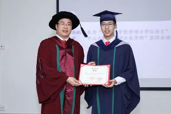 Dean Lin Weipeng presenting the certificate of excellent master’s thesis to Yao Zhibang