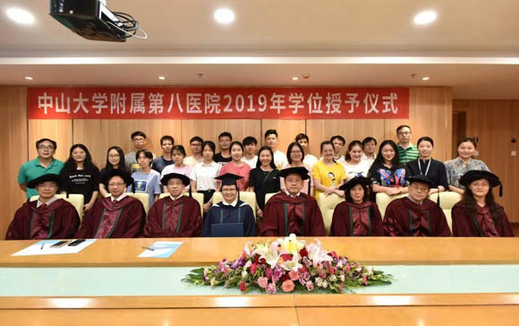 On the afternoon of June 26, The Eighth Affiliated Hospital held the 2019 degree ceremony in the meeting room on the 19th floor of the No. 2 Building at the Hospital. The Hospital’s Vice President Huang Hui announced the university’s decision of conferring master’s degree to Qin Haoling.