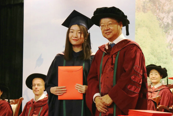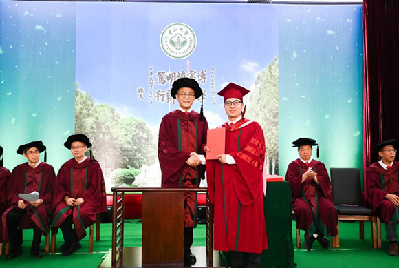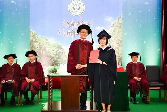 The ceremony started with the solemn national anthem. Assistant Dean Jin Tan read the graduation precept written by Dr. Sun Yat-sen, and announced the university’s decision of conferring doctoral and master’s degrees.