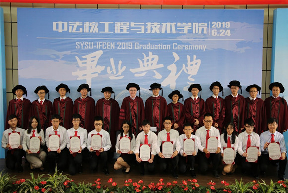 At the noon of June 24, the Sino-French Institute of Nuclear Engineering and Technology held the 2019 graduation ceremony and the postgraduate degree ceremony in the Lecture Hall of the Library on Zhuhai Campus./