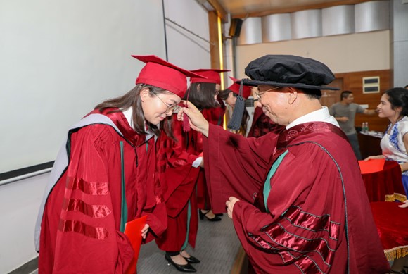 All graduates rose and sang the university anthem. After the ceremony, the graduates and supervisors took a group photo on the lawn in front of the Swasey Hall.