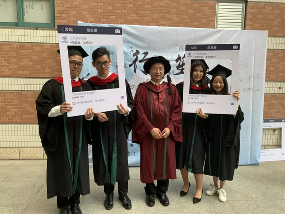 On the afternoon of June 14, the School of Atmospheric Sciences held the 2019 graduation ceremony in the auditorium on Guangzhou East Campus. The graduates signed their names on the signature wall, and received souvenirs prepared by the school. Professor Dong Wenjie, Dean of the School of Atmospheric Sciences, presented a graduation roll to each graduate. Professor LV Daren, Member of the Chinese Academy of Sciences, was also invited to attend the graduation ceremony. The graduates were inspired to march forward and explore endless mysteries of the atmosphere.