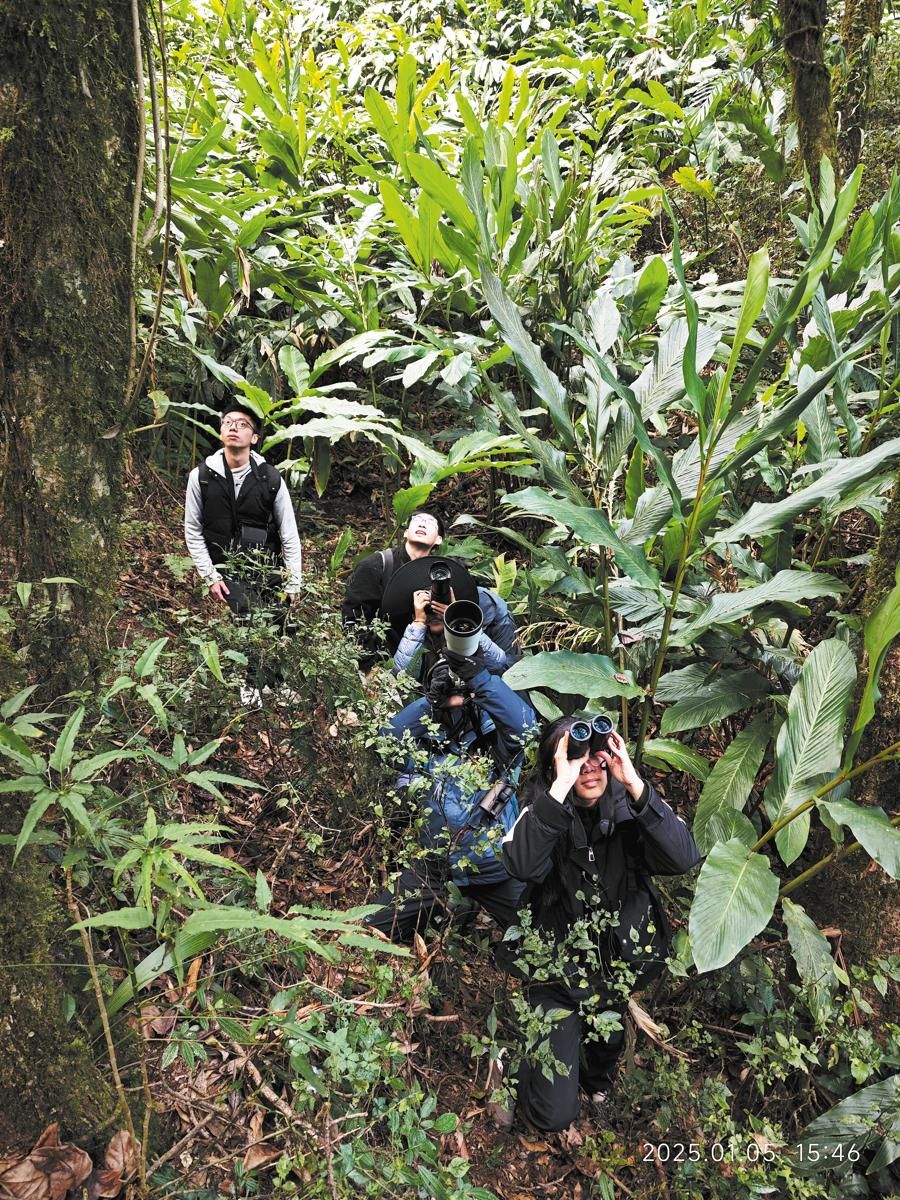 Students from Sun Yat-sen University in Guangzhou, Guangdong province, observe Skywalker hoolock gibbons in a collective forest with Chinese black cardamom in Baoshan, Yunnan province, on Jan 5. FAN PENGFEI/FOR CHINA DAILY