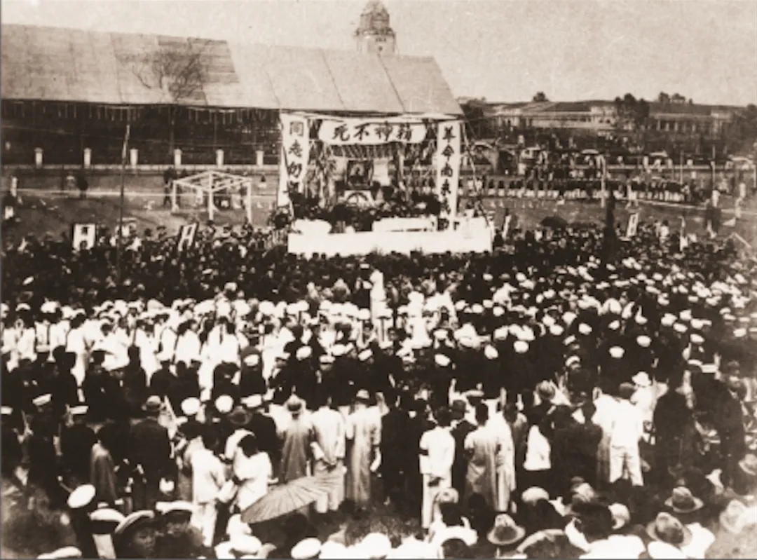 大革命時期,位于民主革命策源地廣州的中山大學一度以“促進國民革命”為重要任務之一,各種革命活動在學校發生、舉辦,號稱革命策源地之策源地,代表性活動至少有兩類。革命導師生卒紀念場地。1925年3月,創校人孫中山先生在北京逝世,廣大設置靈堂,廣州學界數萬人前來致祭追悼。次年3月,廣州各界人民舉行紀念孫中山先生活動,邀請國共兩黨重要人士林伯渠、沈雁冰、高語罕、鄧中夏、沈寶同、何香凝、蔣介石、譚延闿等13人,連續一周在廣大演講孫中山先生的革命歷史、政策思想等各方面內容。1926年1月21日,廣東各界團體在廣大操場舉行紀念列寧、李卜克內西、盧森堡大會。軍政臺由高語罕報告,商學臺由惲代英報告,工農臺由張國燾報告。鮑羅庭、譚平山、鄧中夏、阮嘯仙等到會演講。1926年5月5日,為馬克思誕辰紀念日,團廣東區委、中華全國總工會、廣東省農民協會、廣東婦女解放協會等在廣大禮堂舉行紀念演講大會,邀請郭沫若、陳啟修、彭述之等演講馬克思生平及其學說。1927年1月21日,中大學生會等團體在中大操場舉行列寧逝世紀念大會,李濟深、孫炳文、鄧中夏等到會演講。