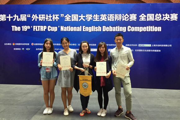SYSU students win first prize in the 19th “FLTRP Cup” National English Debating Competition