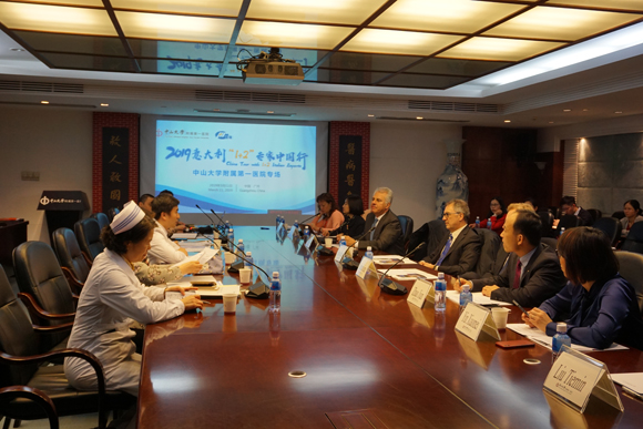 On March 11, 2019, Prof. Stefano Manfredi, President of Milan National Cancer Institute & National Cancer Specialist Hospital; Prof. Massimiliano Gennaro, Director of Breast Department, Milan National Cancer Center & National Cancer Specialist Hospital; Prof. Maurizio Lunati, Director of the Cardiology Department of Niguarda Hospital visited the First Affiliated Hospital of Sun Yat-sen University.