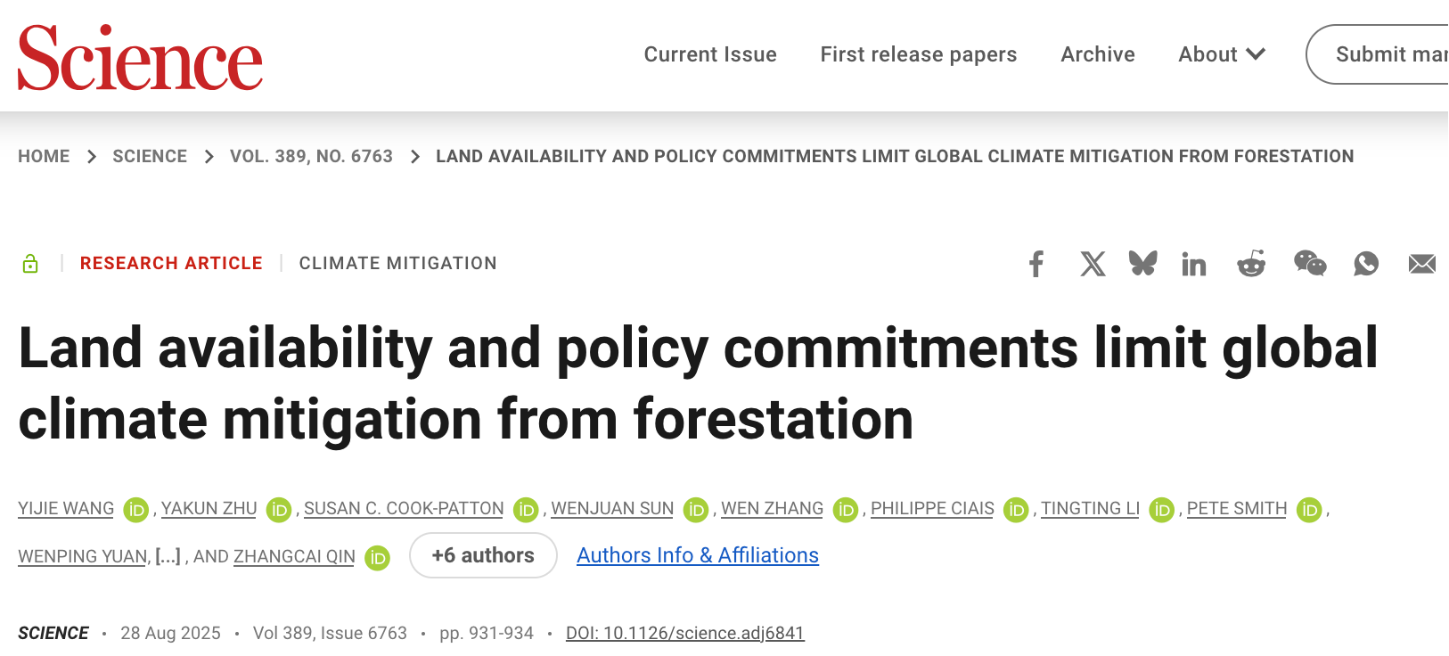 Editors at Science commended the study for its comprehensive analysis, calling it a "more realistic" assessment of forestation’s climate effects. Academician Pep Canadell, leader of the Global Carbon Project, also published a detailed commentary on the paper.