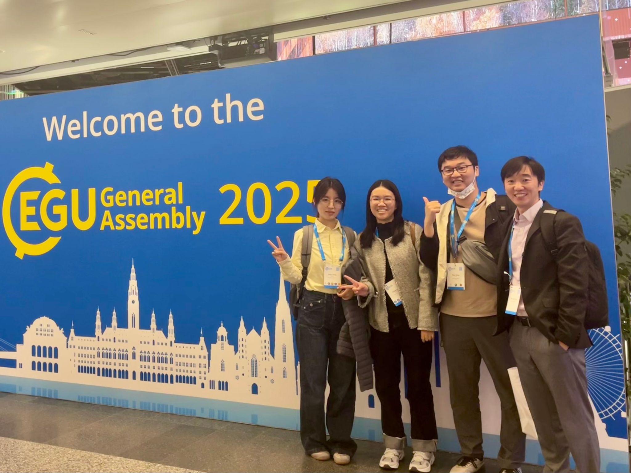 Professor Zhangcai Qin (far right) and his student researchers, including the paper's first author Yijie Wang (second from right), at a conference in Austria.