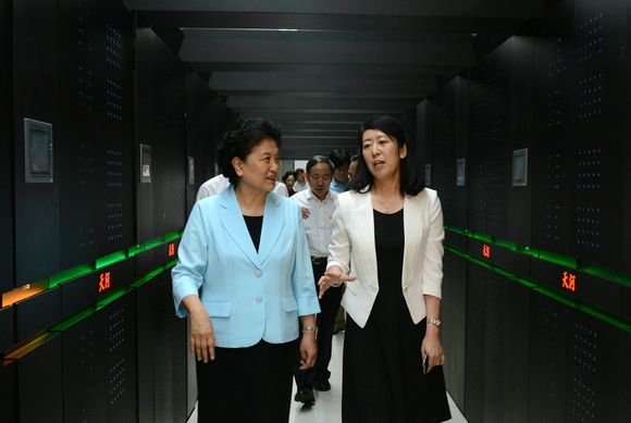 On the morning of May 22, 2016, Liu Yandong, Member of the Political Bureau of the CPC Central Committee and Vice Premier of the State Council, came to Sun Yat-sen University (SYSU) to visit the National Supercomputer Center in Guangzhou (NSCC-GZ). Yuan Guiren, Minister of Education; Zhu Xiaodan, Governor of Guangdong Province; and Ren Xuefeng, Secretary of the CPC Guangzhou Municipal Committee, attended the event, accompanied by Chen Chunsheng, Secretary of SYSU Party Committee, and Luo Jun, President of SYSU.