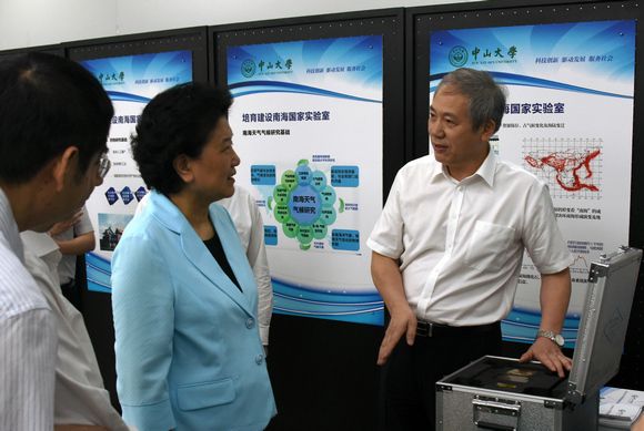 Vice Premier Liu Yandong listening to SYSU President Luo Jun’s report on the University’s research work