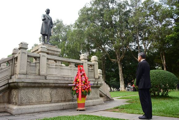 SYSU leaders, faculty and student representatives present flowers to the bronze statues of Dr. Sun Yat-sen on four campuses.