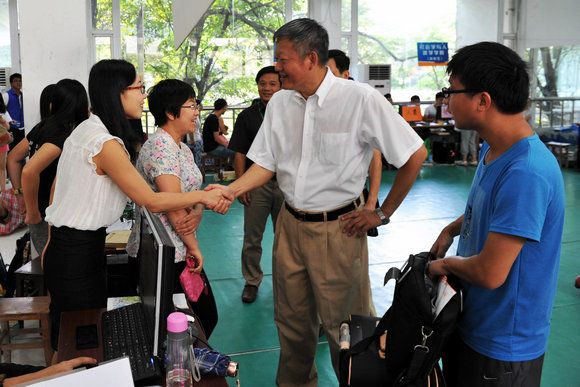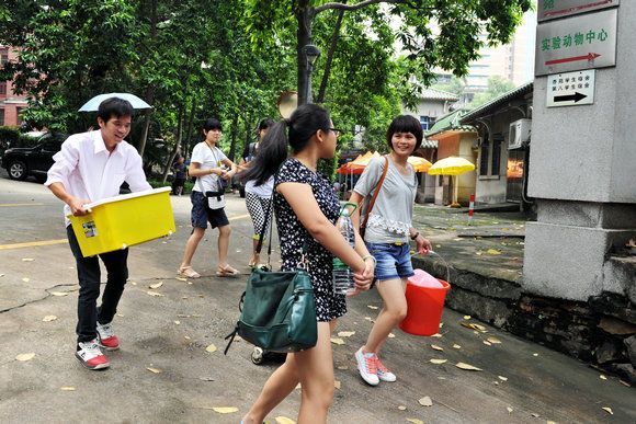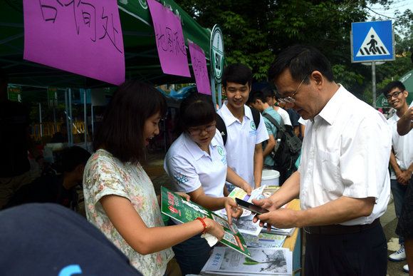 The 2014 work of welcoming new students was carried out on four campuses of SYSU on August 21. Executive Deputy Secretary and Vice President Chen Chunsheng, Vice President Yan Guangmei and Vice President Yu Minbin respectively inspected the work and visited the staff on site. Before this registration day, Vice President Li Shanmin went to the campuses to inspect the maintenance projects. Party Secretary Zheng Detao and President Xu Ningsheng asked relevant departments to make arrangements to welcome new students.