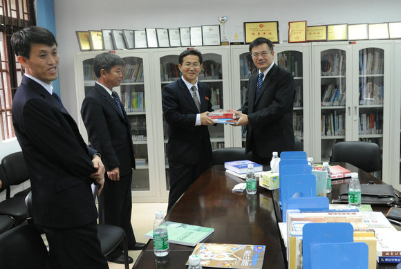 After the meeting, Vice President Yan Guangmei accompanied the delegation to visit Sun Yat-sen University Press. CHEN Jinhua, Chairman of SYSU Press, QI Jun, President of SYSU Press and ZHOU Jianhua, Editor-in-Chief of SYSU Press introduced the current situation of the press and the publication of various kinds of books to the delegation in detail, and also presented books to the DPRK Education Commission as gifts.