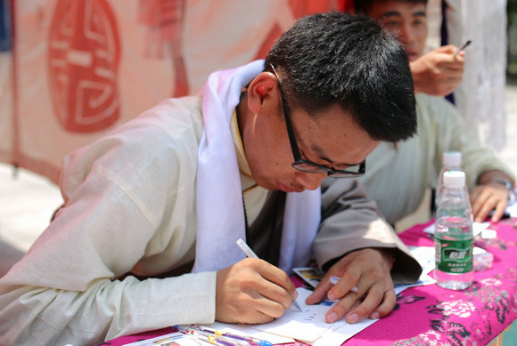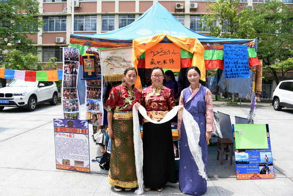 At 10 am on June 11, the Tibetan cultural show was unveiled in Qinxin Square, consisting of five sections: Tibetan Food, Tibetan Souvenirs, Tibetan Clothing, Tibetan Names and Tibet Tour.
