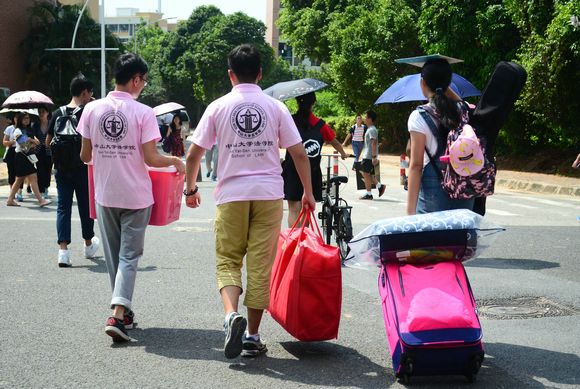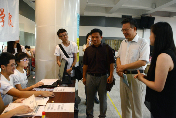 New students registration began on four campuses of Sun Yat-sen University yesterday. President Luo Jun, Vice Presidents Yan Guangmei, Li Shanmin and Yu Minbin respectively inspected the work of welcoming new students on site. Till the afternoon of August 19, 2015, a total of 7,636 undergraduate first-year students registered, with the registration rate at 95.9%; and 5,645 postgraduate first-year students registered, with the registration rate at nearly 90%.