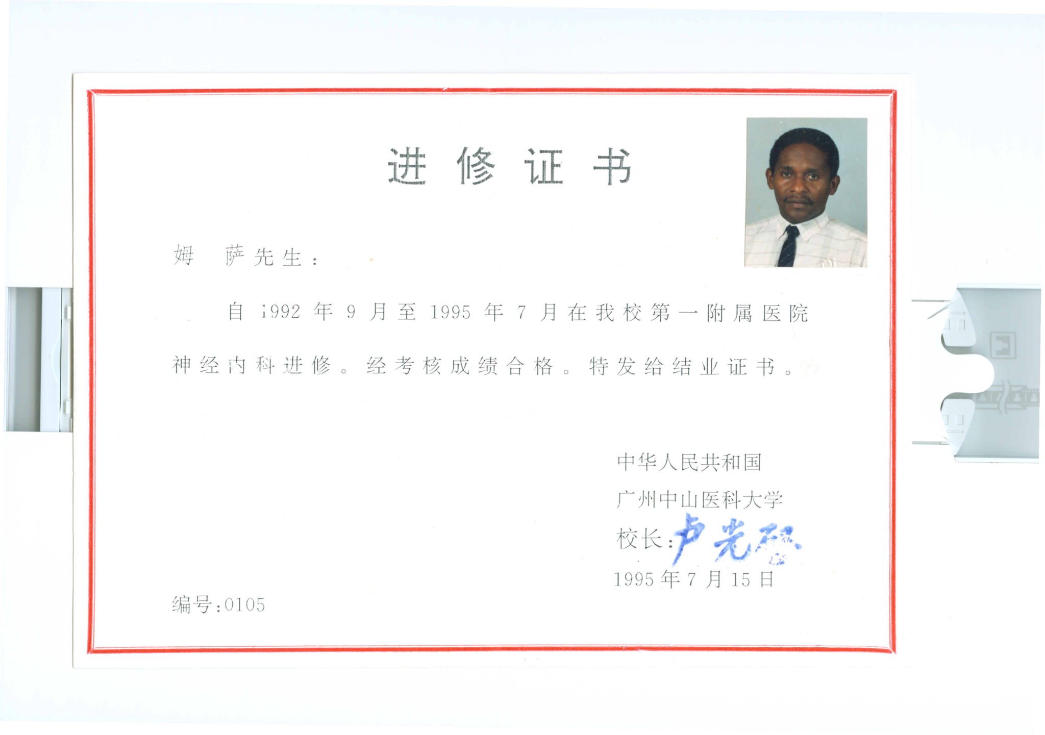 Dr. Msa's Certificate of Advanced Study at Sun Yat-sen University of Medical Sciences