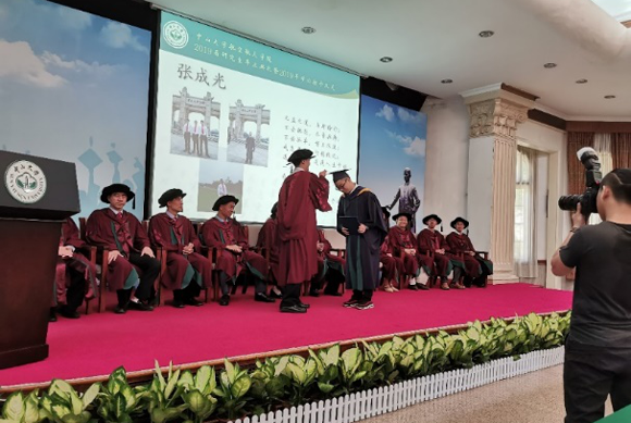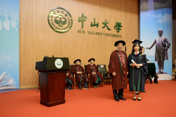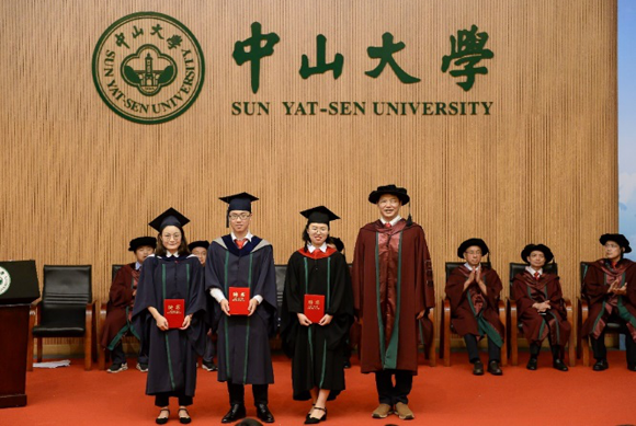 Dean Xue Desheng announced the decision by the SYSU Degree Evaluation Committee. The supervisor representatives presented the degree certificates to the master’s and doctoral degree recipients.
